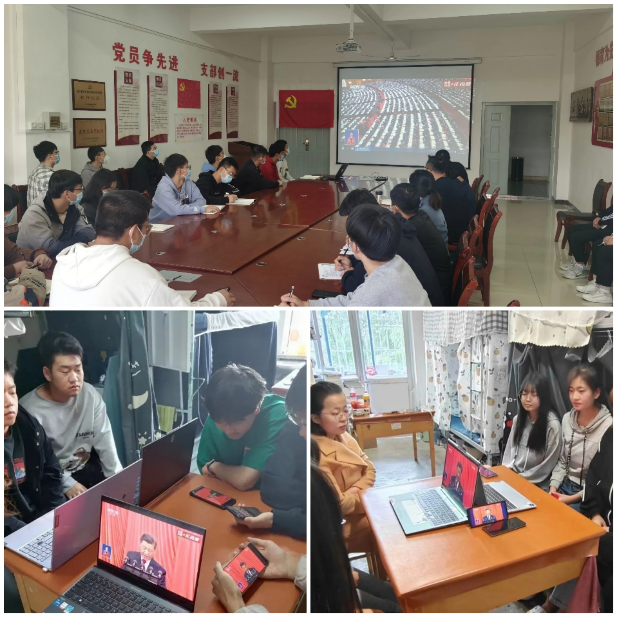 习近平总书记所作的大会报告凝聚人心、催人奋进。收看直播的同学们聚精会神地看着屏幕,不时在笔记本上写下要点和自己的感悟。青年一代有理想、有本领、有担当,国家就有前途、民族就有希望。对于青年大学生来说,远大理想与爱国情怀是相辅相成的,只有将个人的命运与党和国家的命运紧密联系在一起,才能让理想之光成为前行之光,让青年之光成为时代之光。