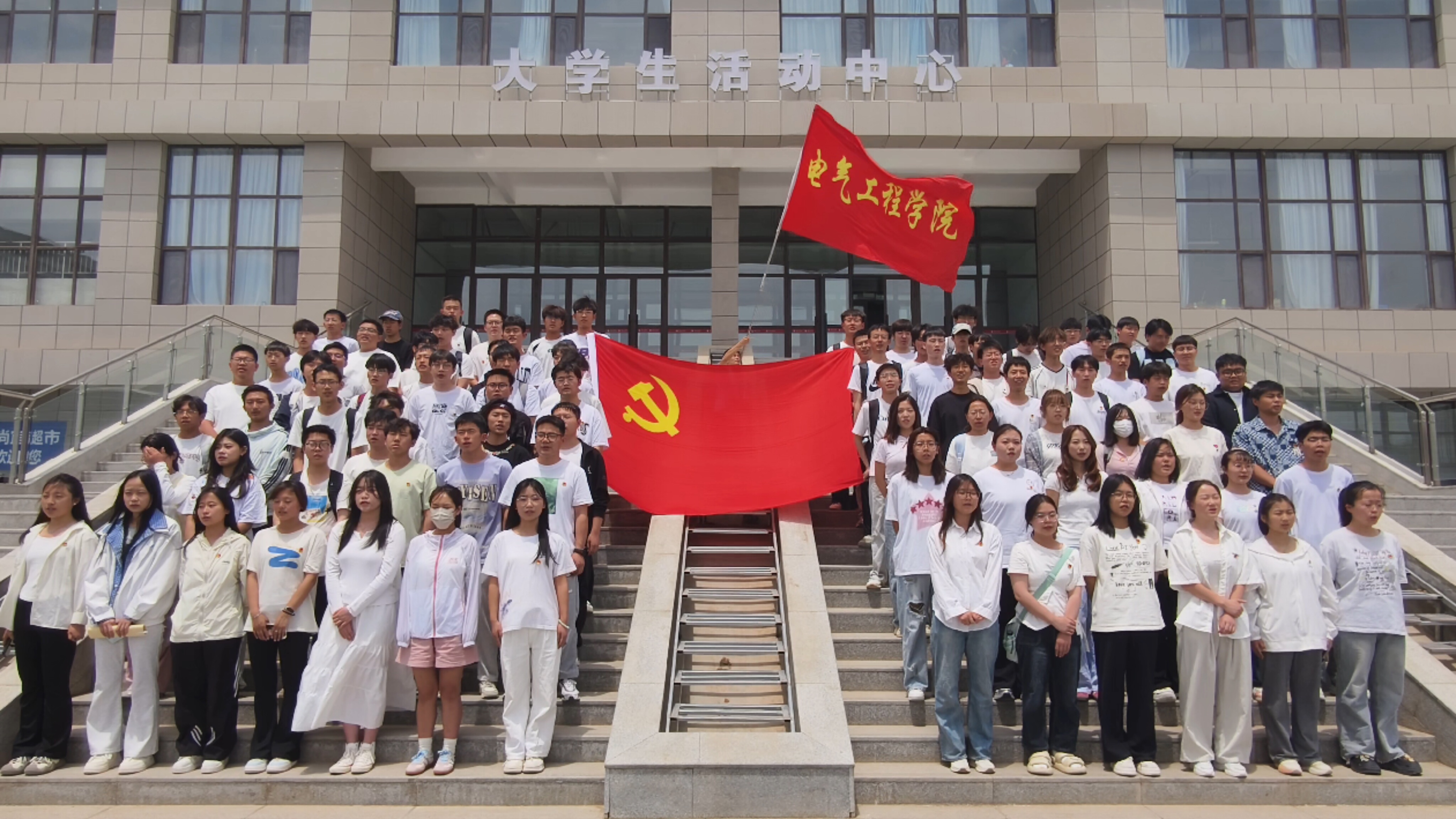 为庆祝建党104周年,增强学生爱党爱国爱社会主义热情,传承红色经典文化,铸牢中华民族共同体意识,6月16日中午,电气工程学院在公共教学楼举办第一届“民族团结共奋进 青春红歌颂党恩”学生红歌拉歌比赛。