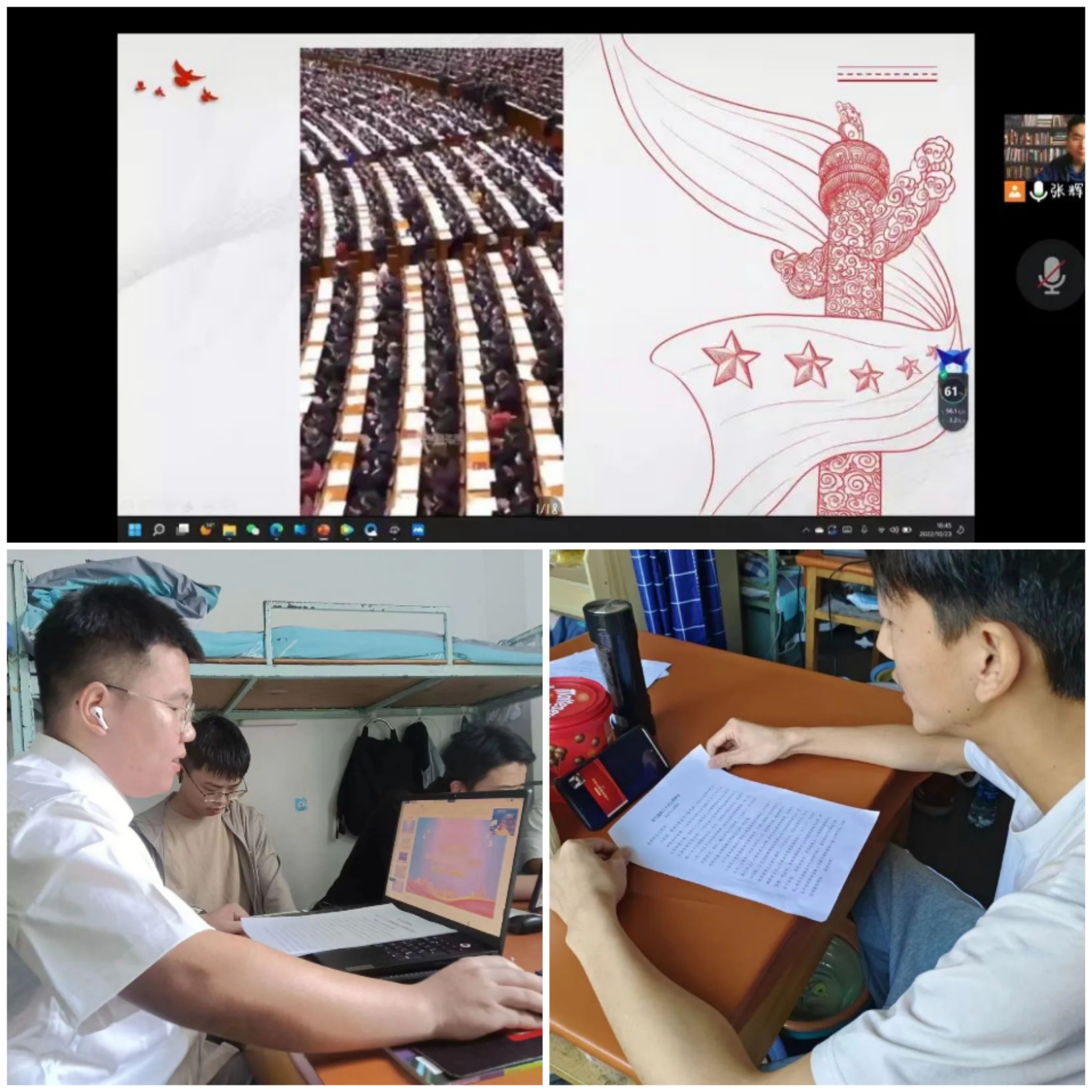 为积极遵守疫情防控要求,本次团日活动以线上形式开展。活动伊始,通过主持人的介绍使同学们明确二十大主题,为实现本次活动的目的奠定基础。接着,主持人通过提问、演讲比赛、观看影像资料等形式加深了同学们对二十大的理解。最后,活动负责人对活动进行总结,提出活动进行中的优点与不足。本次活动在增强同学的爱国意识和促进大学生精神文明建设的同时,让同学们正确认识个人、集体、国家三者之间的关系,实现自身社会价值及个人价值。