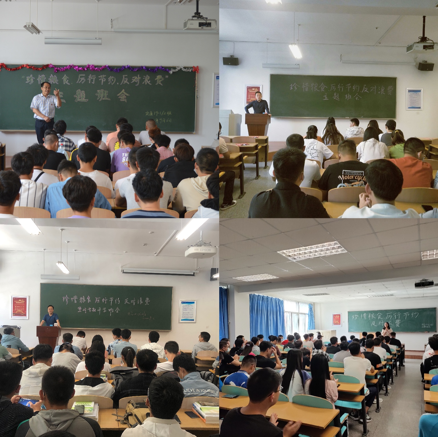 班会上,辅导员、班主任分别对教育厅《关于印发制止高校餐饮浪费行为15项措施的通知》和我校《关于开展“珍惜粮食、厉行节约、反对浪费”主题教育活动的通知》的主要内容进行了解读,使同学们充分认识到建设“节约型社会、节约型校园”的重要意义;把光盘为荣、浪费为耻,从日常做起,从点滴做起,让爱惜粮食、珍惜每一粒米、文明用餐理念融入到日常生活中。各班班长及部分学生代表分享了自己对开展“珍惜粮食、厉行节约、反对浪费”重要性的认识,围绕大学生文明就餐、珍惜粮食、节约水电、爱护公物、艰苦奋斗等方面做了发言,呼吁全体同学从我做起、从自己做起,形成浪费可耻、节约为荣的良好风气,使“珍惜粮食、厉行节约、反对浪费”成为全体学生的行为习惯和生活方式。