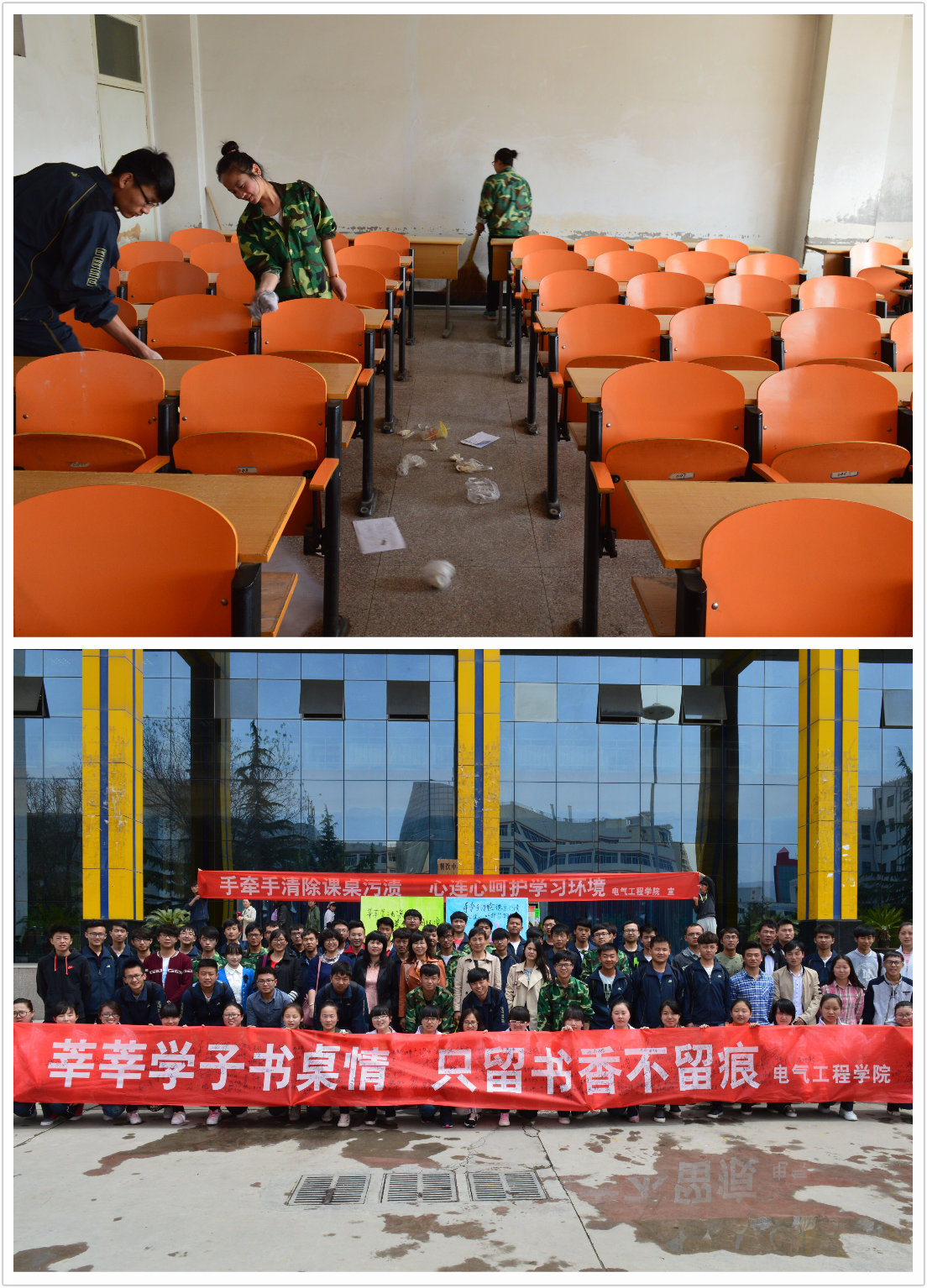 此次活动,增强了同学们杜绝课桌文化、爱护学习环境的意识,树立了创建文明学习环境、从我做起的决心。增强了班风、学风建设。(供稿/摄影:电气工程学院)