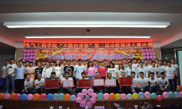 2015年6月18日,电气工程学院在八楼举办“不散的青春” 第二届诗歌朗诵大赛暨欢送毕业生晚会。电气工程学院全体辅导员及各级学生干部观看了比赛。