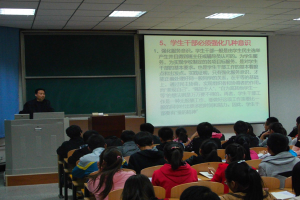 开班典礼后,吴书记围绕学生干部应有的最基本的素质、思想觉悟和服务意识,提升自我的能力,作了《做一名学生干部是一门艺术》的讲座。