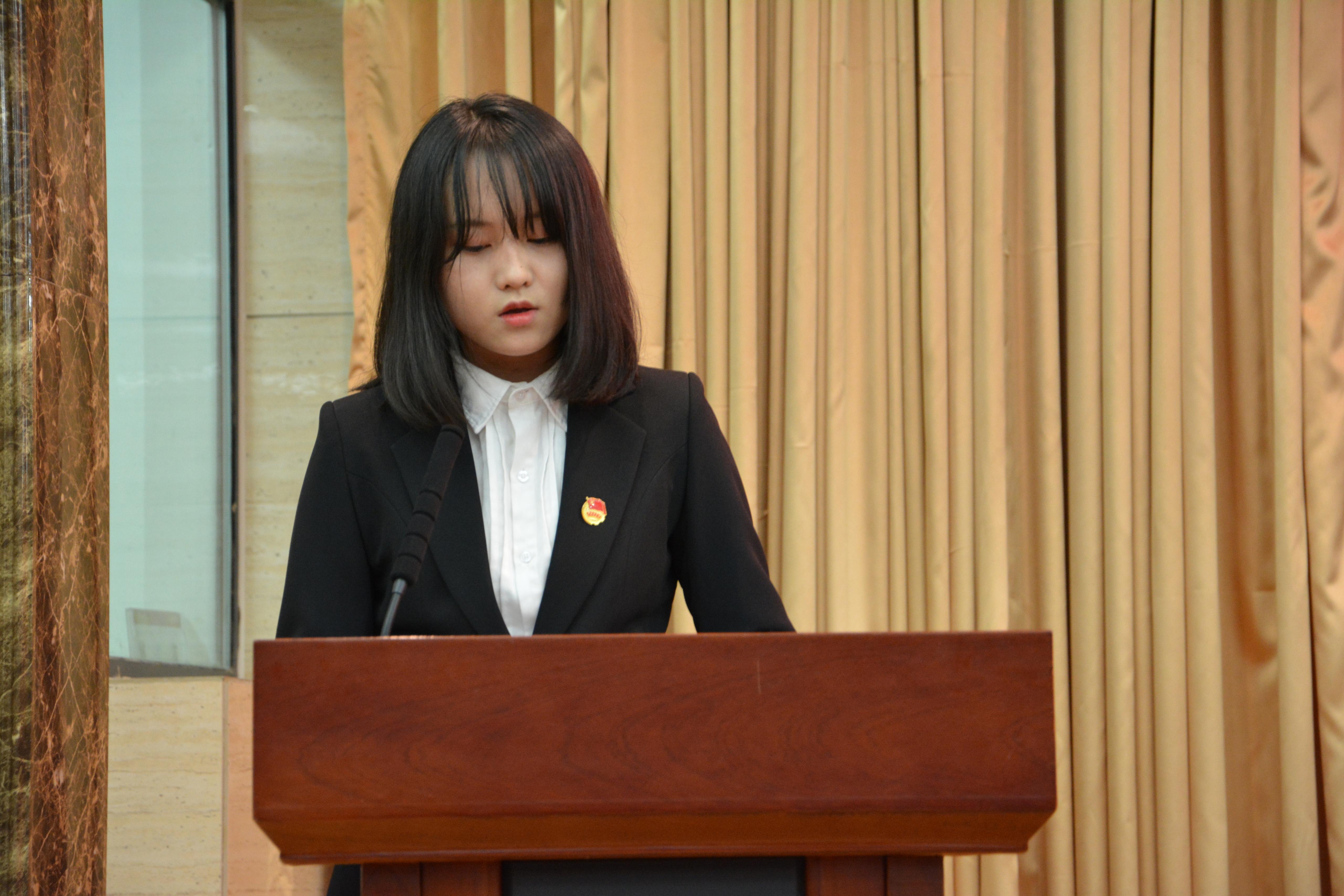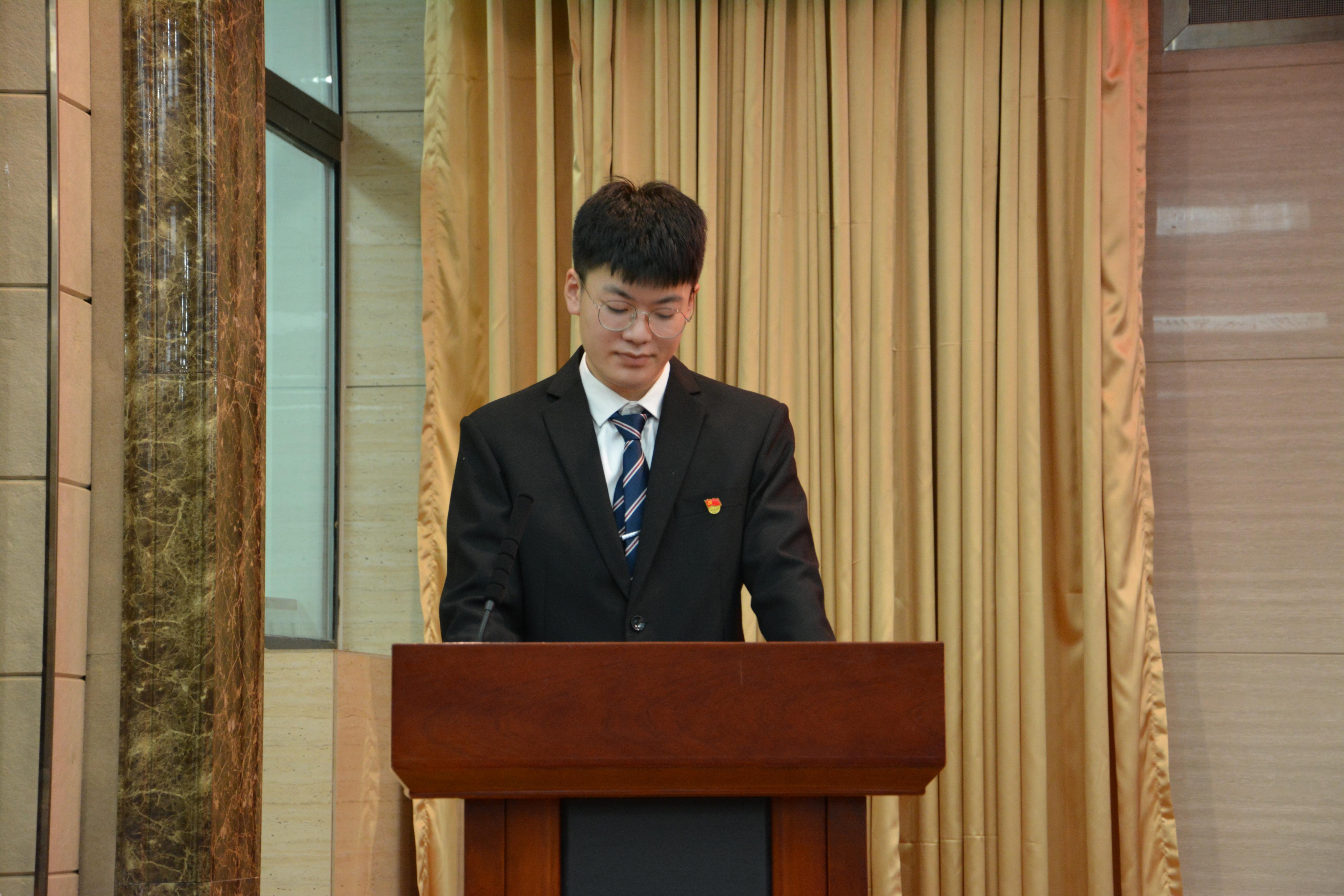 典礼在庄严的国歌声中拉开序幕。在校生代表、电气20-4班赵彬廷同学,新生代表、机器人工程系22班陈雅卓同学先后发言。