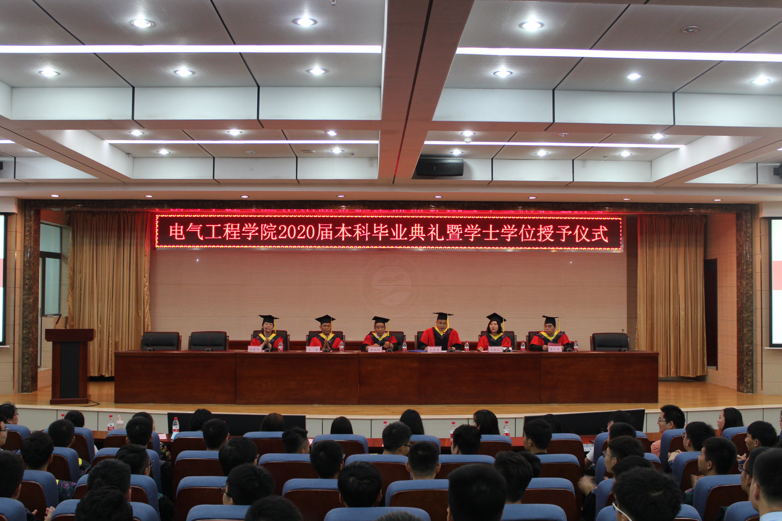 7月3日上午,电气工程学院在第三学术报告厅举行2020届本科生毕业典礼暨学士学位授予仪式。院长李双科、副院长王淑红,学院学位评定分委会委员出席典礼。党委书记王重贤主持典礼。各系(中心)主任、学工办主任,辅导员、班主任,2020届全体本科毕业生参加了典礼。