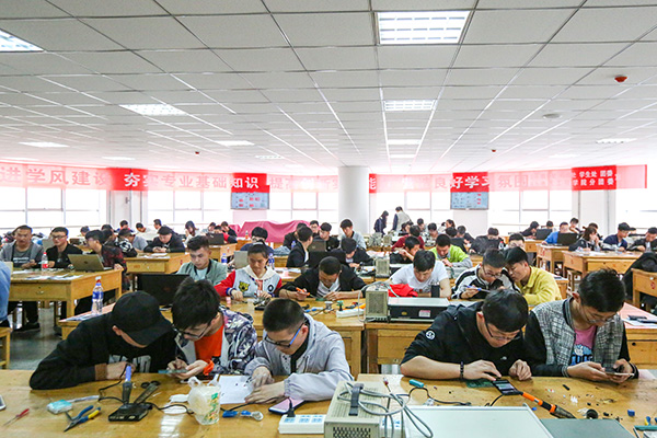 兰州工业学院第二届大学生电子技能竞赛于4月21-22日在科技楼电气工程学院电子技术实习基地举办。副校长李贵山、学生处处长贾魁、团委书记王斌及电气工程学院党总支书记刘保录,院长李双科,副院长张维玲莅临现场指导。
