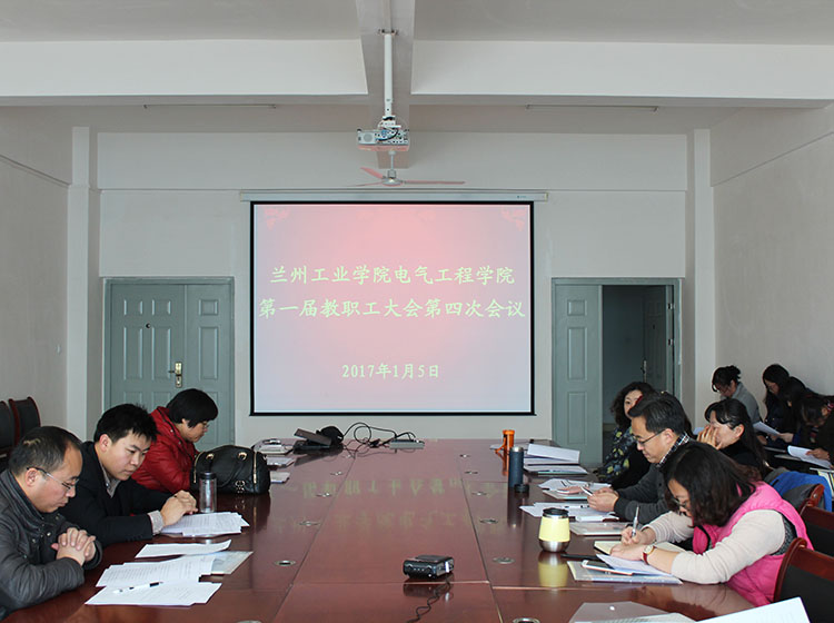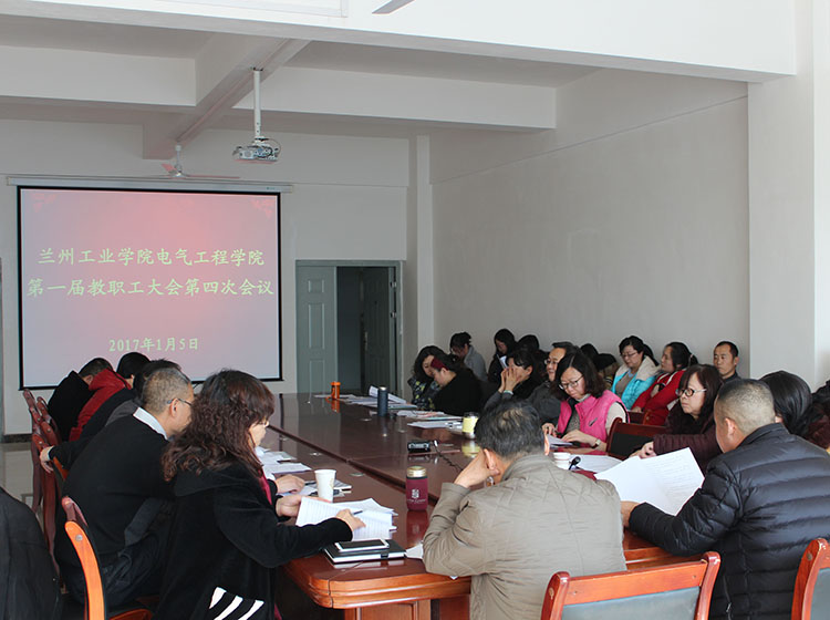 2017年1月5日,电气工程学院在学院会议室召开了第一届教职工大会第四次会议。学院党总支书记吴安生主持会议。全体教职工参加了会议。学院副院长张维玲致开幕词。院长李双科分别作了《电气工程学院2016年工作报告》、《电气工程学院2016年校内津贴二次分配方案报告》、《电气工程学院2016年收益资金使用情况报告》。