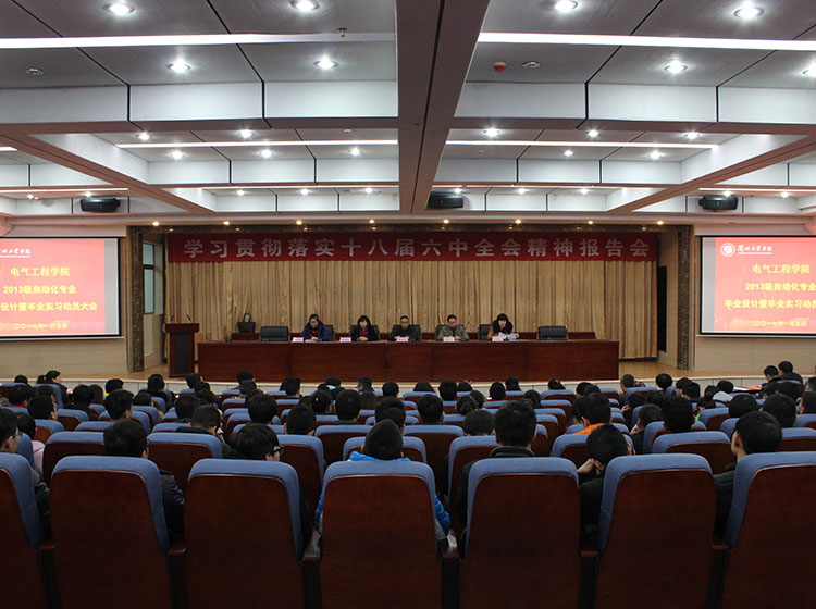 2017年1月5日上午,电气工程学院在第三学术报告厅召开2013级自动化专业毕业设计(论文)暨毕业实习动员大会。学院党总支书记吴安生、院长李双科、副院长张维玲、副院长王淑红,2013级毕业设计全体指导教师及2013级全体学生参加了会议。