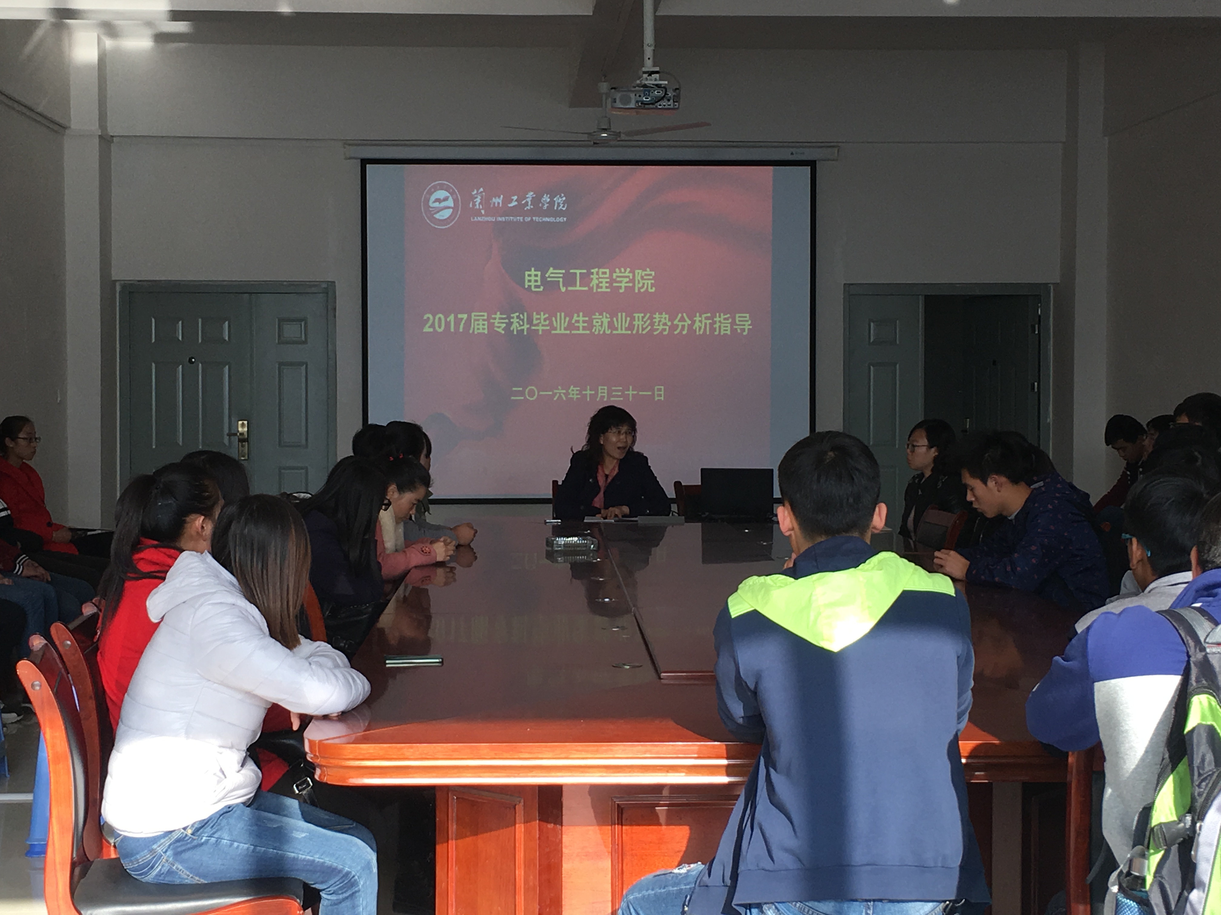 2016年10月31日下午,电气工程学院举办了2017届专科毕业生就业形势分析指导会。副院长张维玲,学工办主任牛玉婷、14级辅导员苏芳和14级专科生的学生代表参加了会议。
