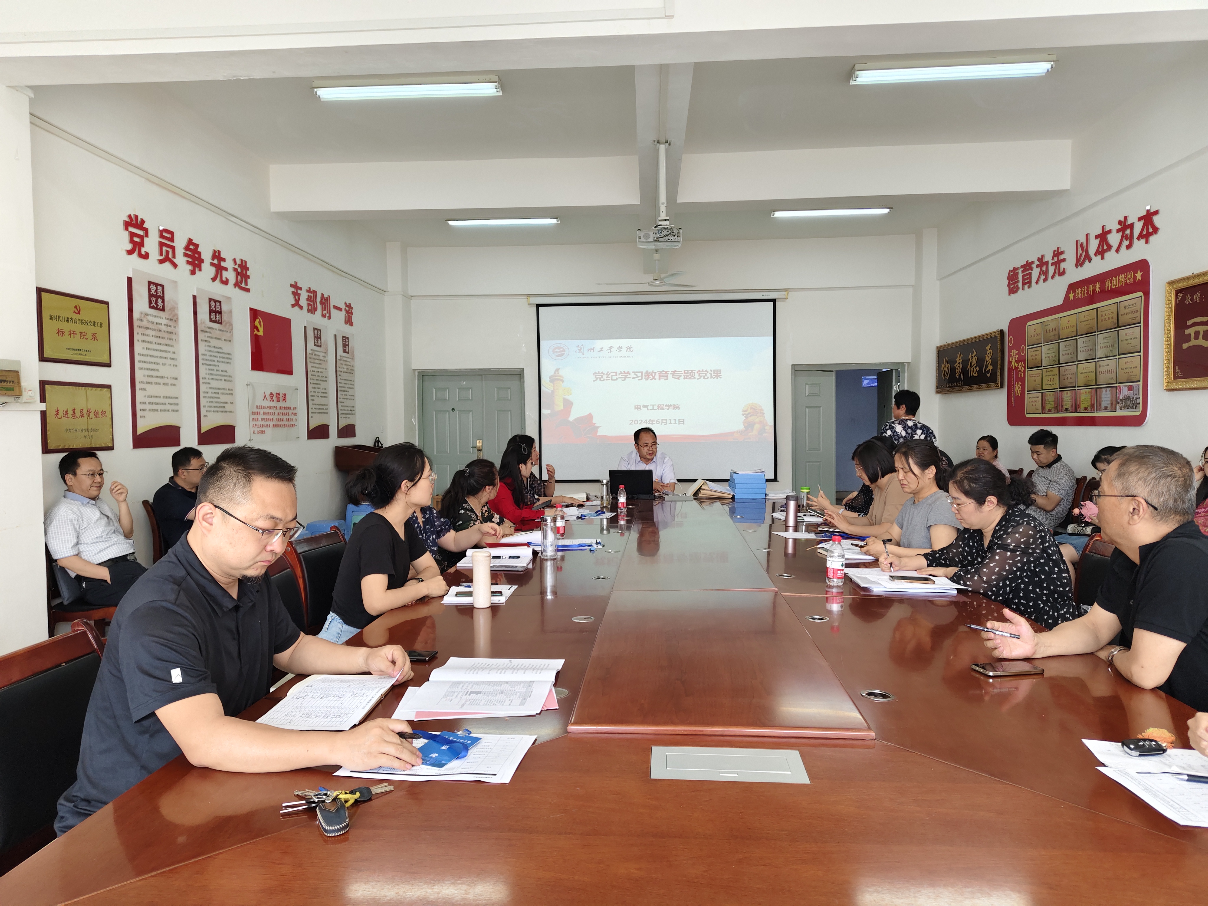 6月11日下午,电气工程学院举办党纪学习教育主题党课,学院党委书记王重贤讲授专题党课。组织安排理论学习中心组专题学习习近平总书记关于全面加强党的纪律建设的重要论述。