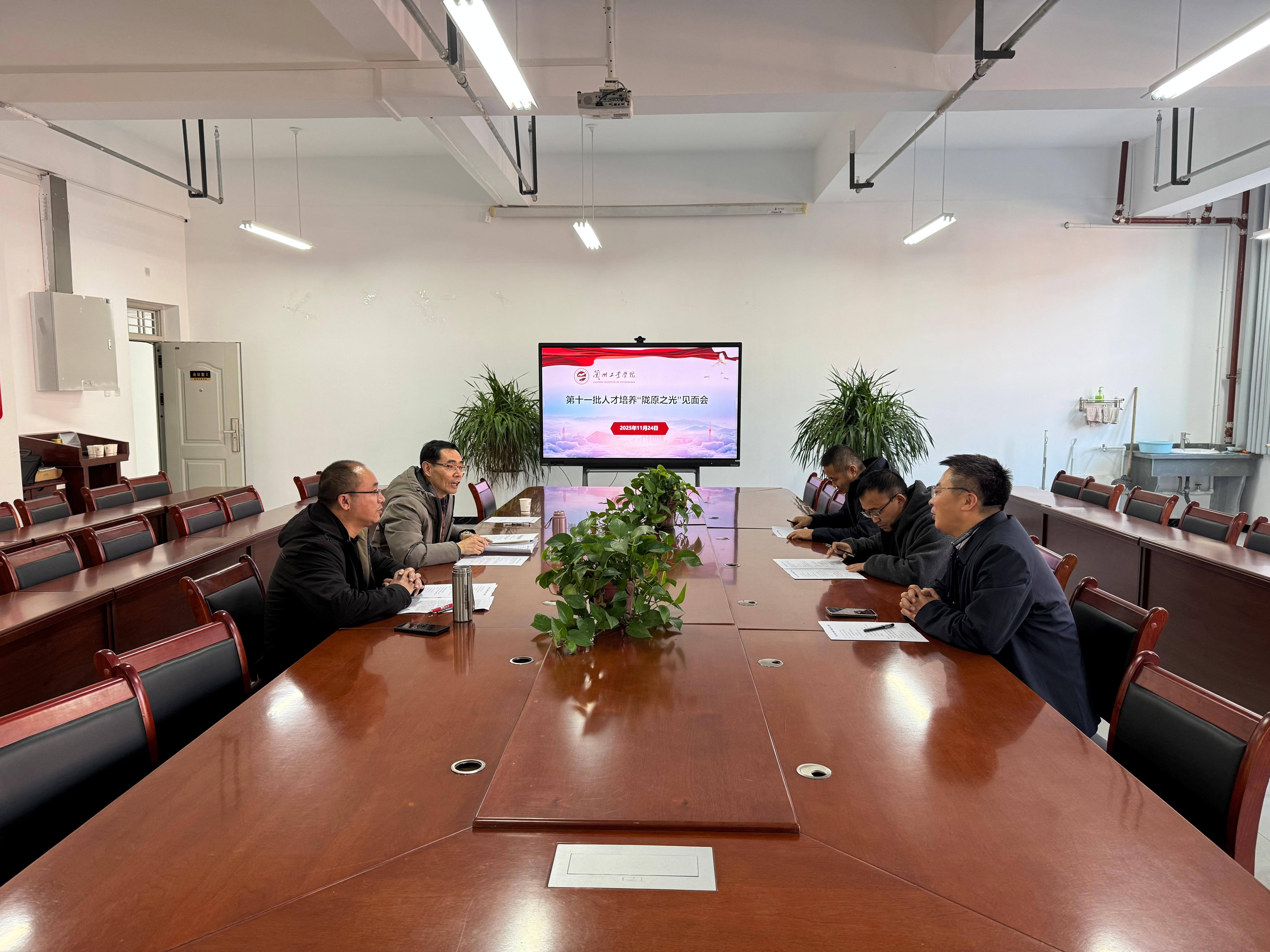 11 月 25 日,我院成功举行甘肃省第十一批“陇原之光”人才培养项目启动会。兰州工业学院人事处处长周耿烈、电气工程学院副院长边玉国,西固区委组织部人才办主任周延斌,甘肃常源电力工程有限公司董事长王首道,以及本批“陇原之光”项目研修学员、甘肃常源电管家科技有限公司总工程师王守平共同参会。